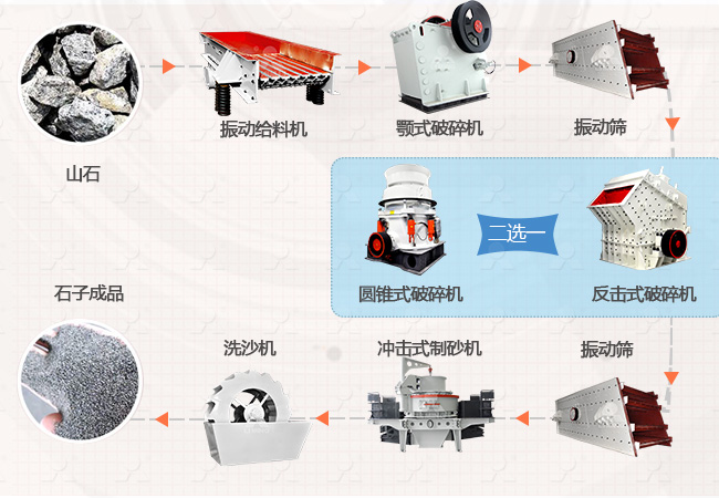 一套完整的碎石生產(chǎn)線需覆蓋 “給料 - 破碎 - 篩分 - 輸送 - 輔助” 五大環(huán)節(jié),設(shè)備功能與型號精準(zhǔn)匹配:?