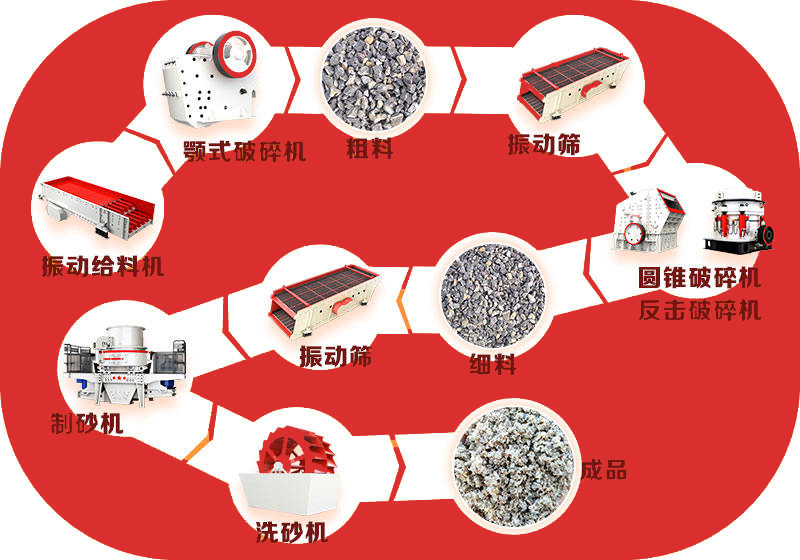 玄武巖的加工一般分為粗碎、中細(xì)碎和制砂整形三個(gè)階段