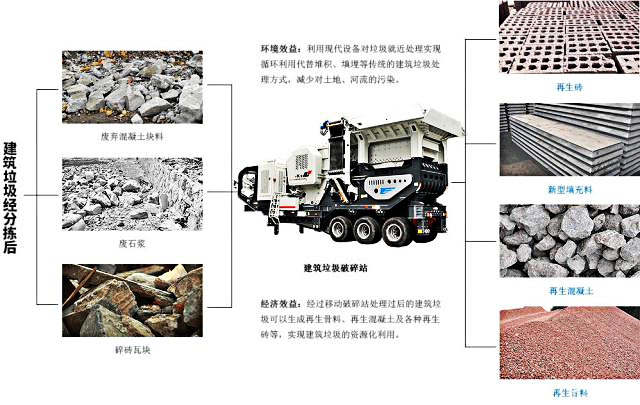 建筑垃圾被集中回收后,通過移動破碎站設(shè)備與砂石生產(chǎn)線等處理后可以實現(xiàn)建筑垃圾再利用。建筑垃圾資源化需要社會的參與。