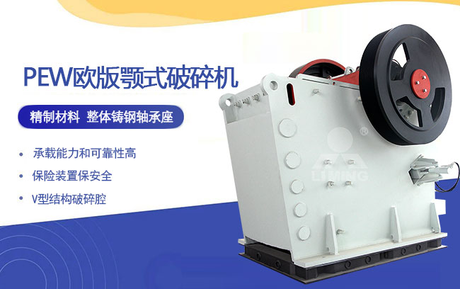 PEW歐版顎式破碎機(jī)有PEW860、PEW1100、PEW200*1300、PEW250*1000、PEW250*1200等多種型號(hào);進(jìn)料尺寸不大于720mm;出料口尺寸在35-225mm;生產(chǎn)能力每小時(shí)在15-500噸之間;電機(jī)功率在45-200kw之間。