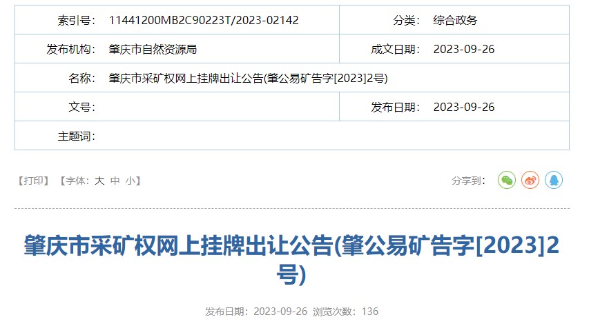 9月26日,廣東肇慶自然資源局發(fā)布封開縣長崗鎮(zhèn)欖逕礦區(qū)飾面用花崗巖礦采礦權掛牌出讓公告。該礦飾面用花崗巖礦資源儲量16629萬方(超1.66億方)、建筑用花崗巖礦資源儲量2349萬方,合計18978萬(約1.9億方)。設計年產(chǎn)700萬方,出讓30年,其實價格47.5億元。