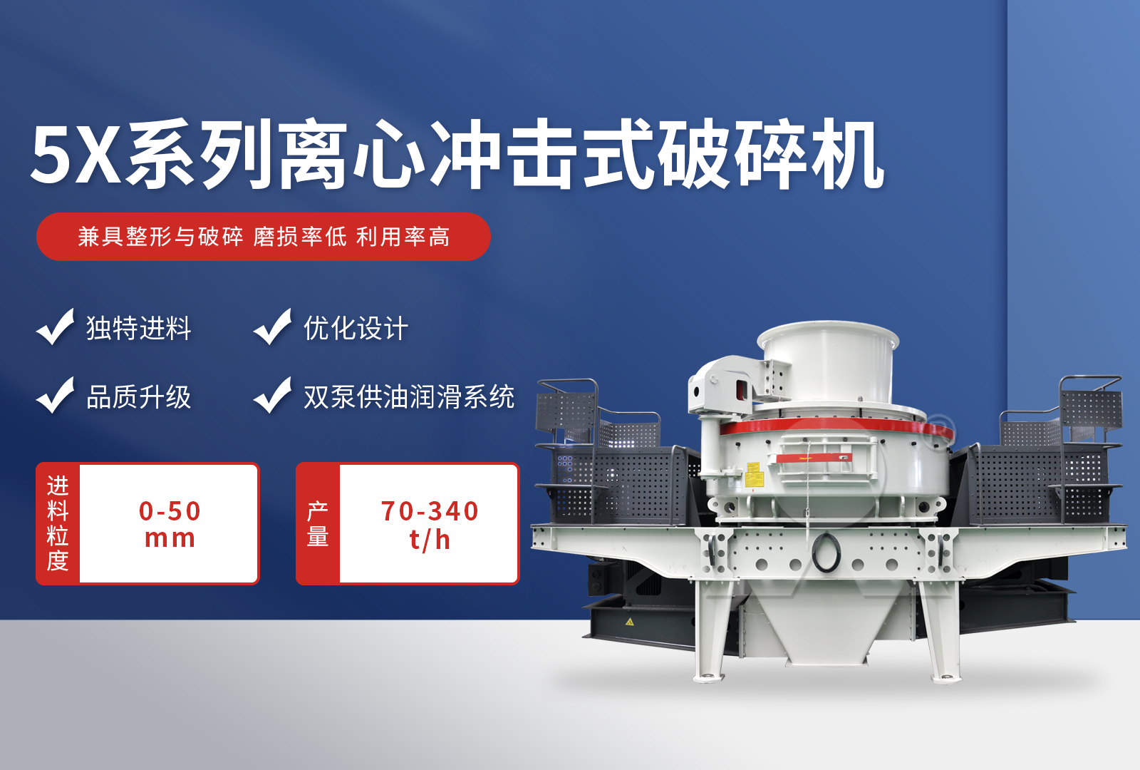 【建議沖擊式制砂機(jī):粒型好,級配合理,可根據(jù)需求自行調(diào)節(jié)】