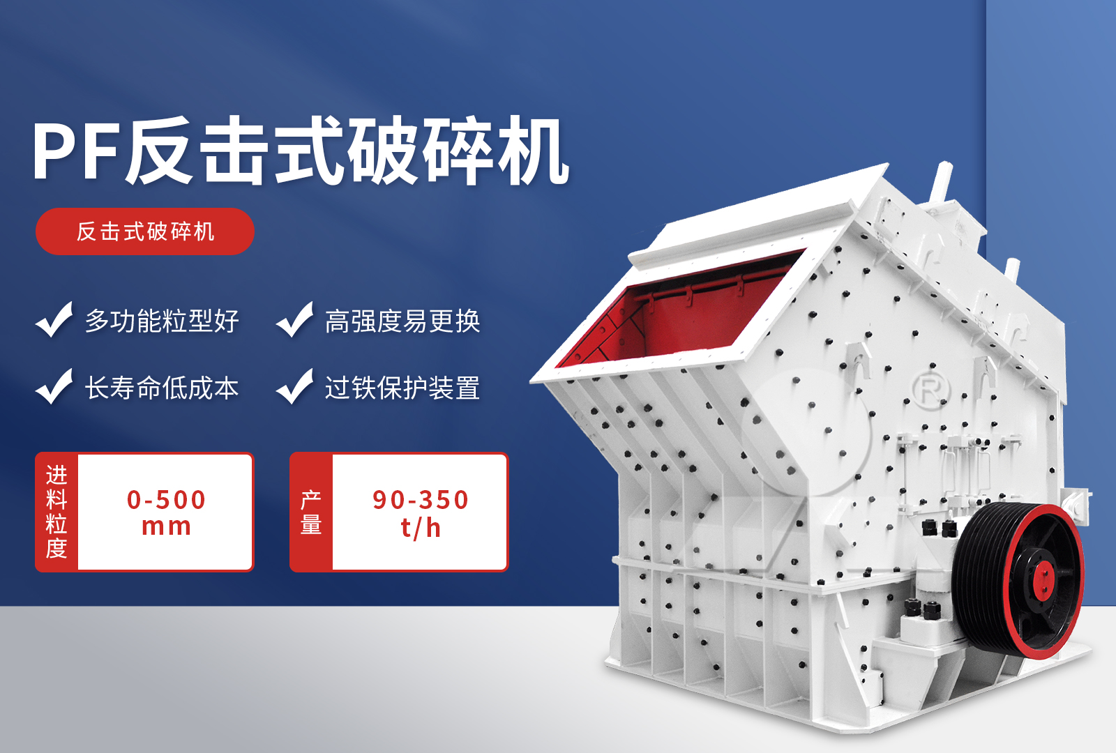 【建議顎破:進(jìn)料口大,1.2米以下物料可直接入料、對物料硬度沒有要求,產(chǎn)量高】